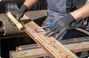 Šis procesas dar labiau sustiprina medienos fasadui skirtos dailylentės paviršių ir tinkamai paruošia jį kitiems gamybos etapams.