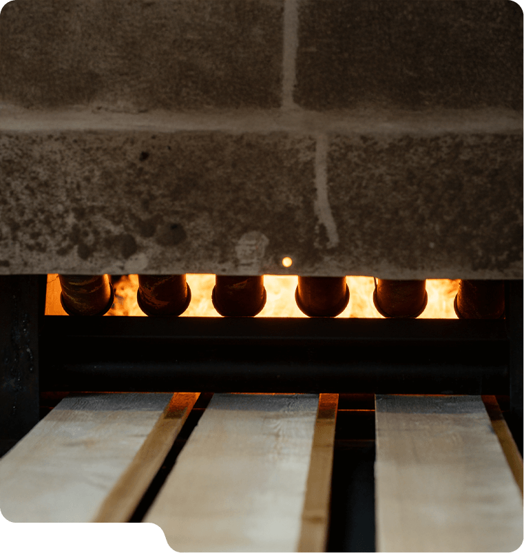Medienos deginimo metu įvyksta tikroji virsmo magija. Iš obliavimo atkeliavę medienos ruošiniai, naudojant specialią įrangą, yra apdeginami iki 2 mm paviršiaus apanglėjimo.