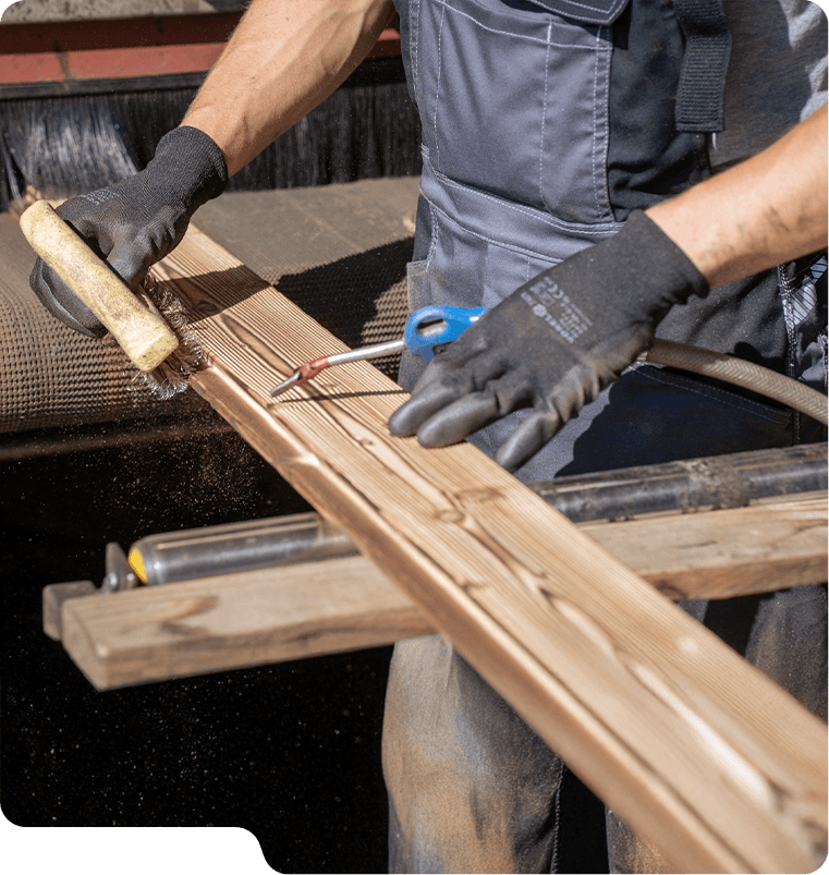 Šukuojame itin tiksliai: nei per daug, nei per mažai. Būtent tiek, kad užtikrintume patvarų degintos medienos fasadų paviršių ir maksimalią apsaugą nuo atmosferos poveikio.